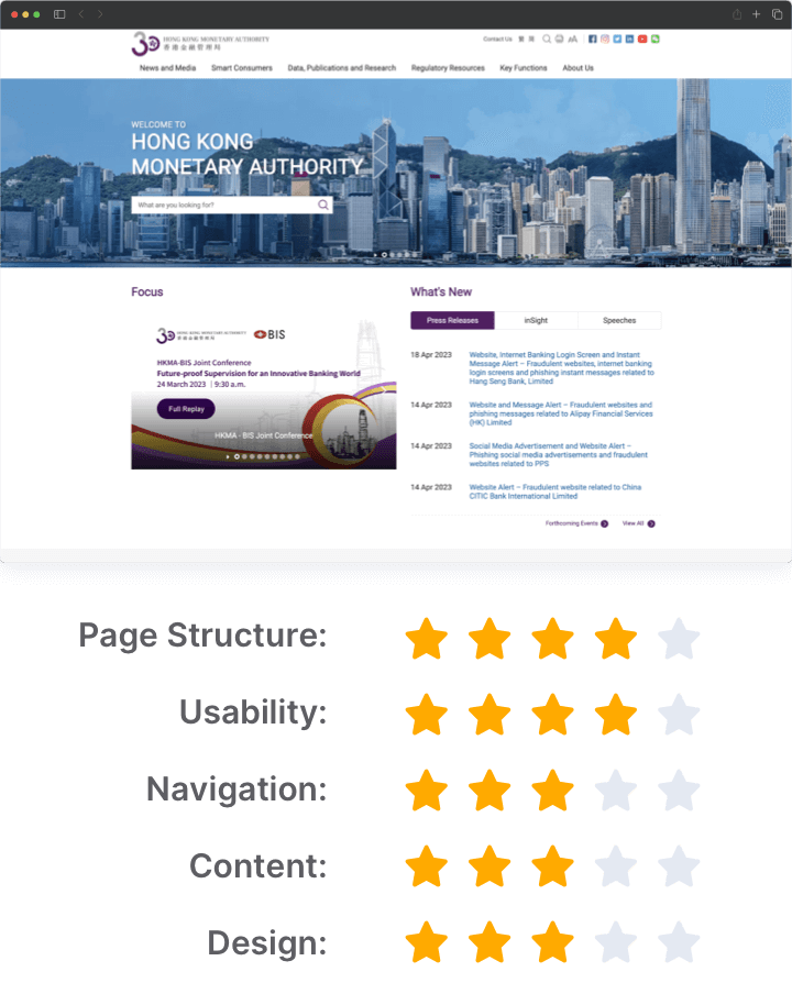 For this, we analyzed 3 other websites in this industry: US Department of Treasury, Australian Department of Finance and Hongkong Monetary Authority.