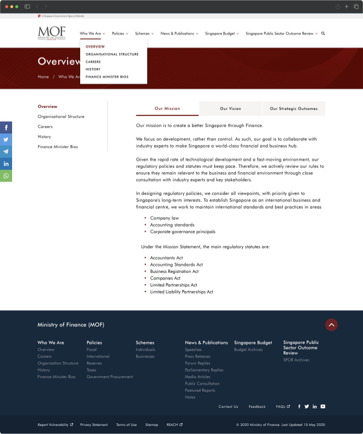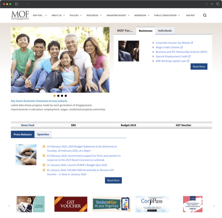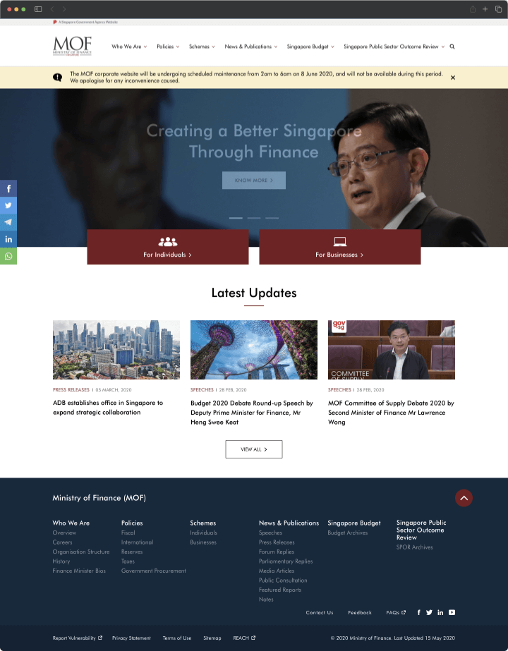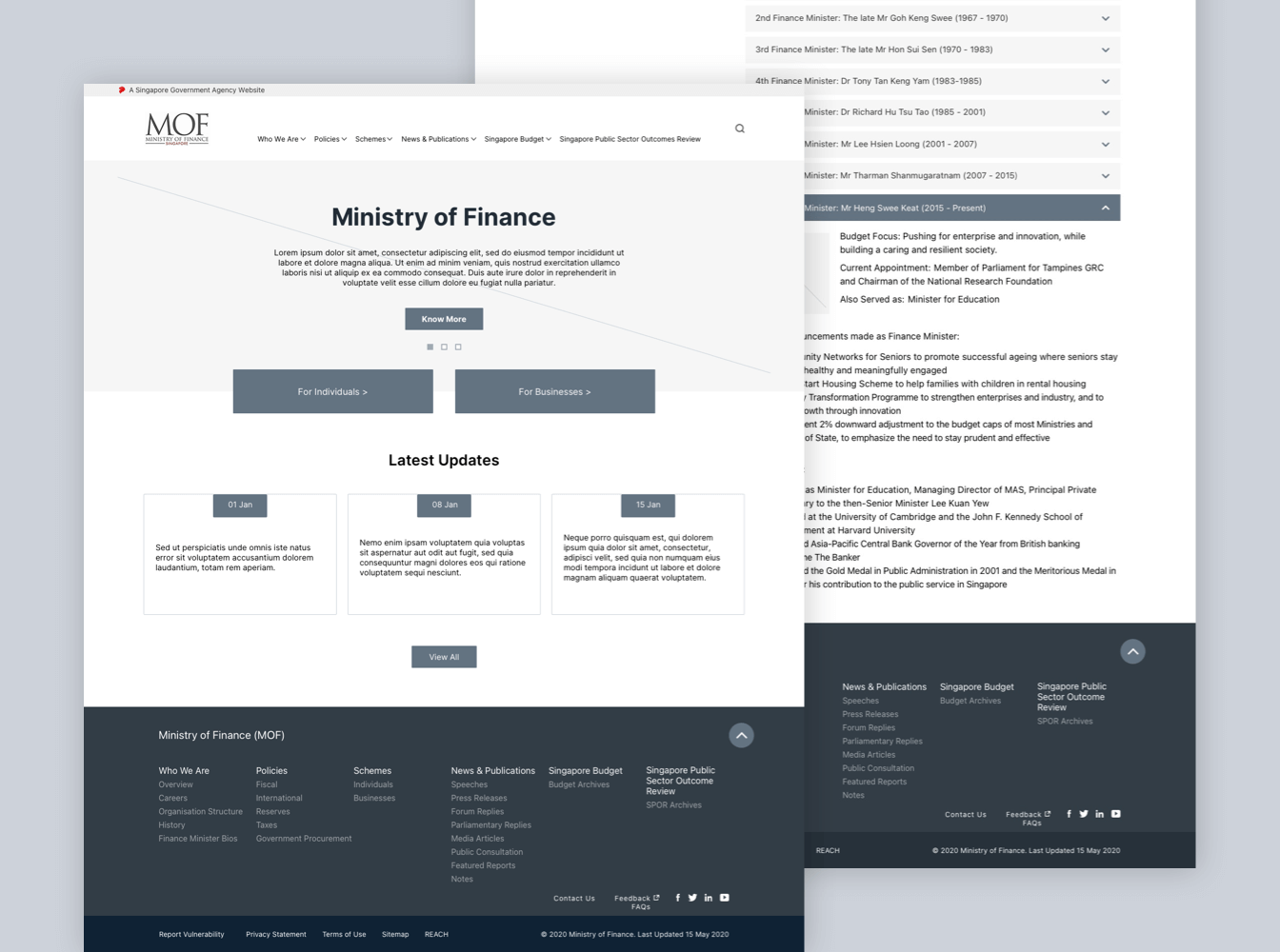 MOF had a basic style guide that we had to follow in terms of colour palette and typography. Aside from that, we tried to improve the other visual elements to create a cohesive look and feel for the website.